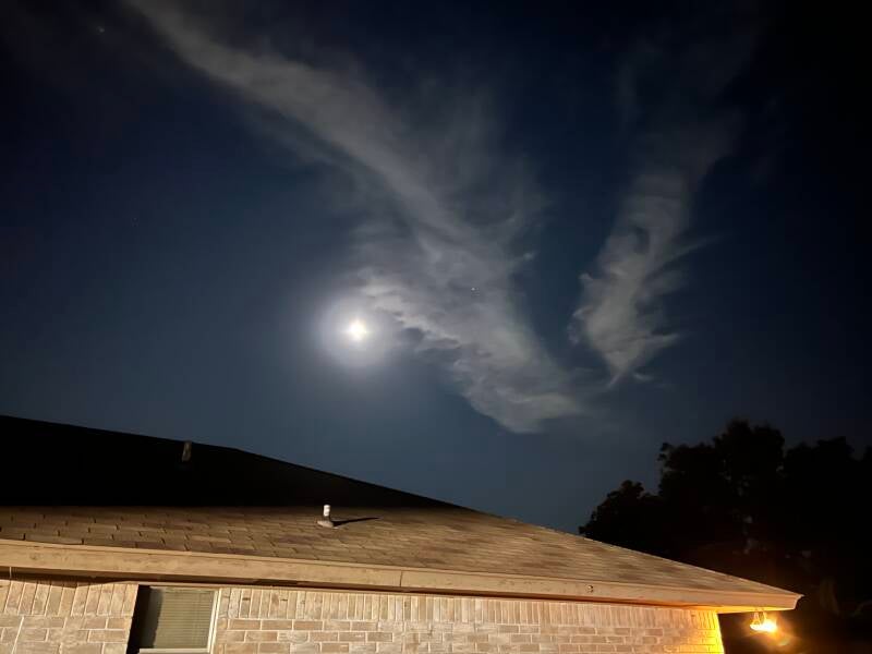 It's a nice cool night with a big moon in the sky.